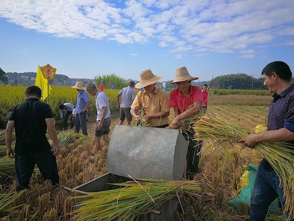 10月10日上午,天高云淡,秋高氣爽,正是收獲的好時(shí)節(jié),在萬(wàn)年縣財(cái)神稻代理商胡音頻的精心籌劃和鄉(xiāng)鎮(zhèn)經(jīng)銷商袁立云的密切配合下,組織了一場(chǎng)44人的財(cái)神稻測(cè)產(chǎn)會(huì)。