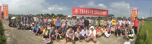 參加本次會議的有田陽縣多個鄉(xiāng)鎮(zhèn)的客戶以及那坡鎮(zhèn)農(nóng)戶總計120人,觀摩時,晶兩優(yōu)1212的田間表現(xiàn)獲得了大家一致的肯定,張阿姨說:”晶兩優(yōu)1212的早稻谷子我打米吃了很好吃,有農(nóng)技站的還在我這里買了一些米回去,今年有好多品種都有很矮的那種禾,這個品種就不存在,看來還是得打好藥,管理好.....”