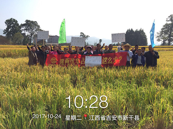 2017年10月24日,江西省新干縣召開了隆兩優(yōu)華占再生稻零售商觀摩及種植大戶預(yù)定會議,全縣各鄉(xiāng)鎮(zhèn)零售商和種植大戶等40余人前往七琴鎮(zhèn)現(xiàn)場觀摩。