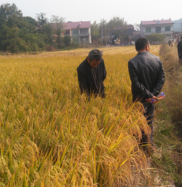 剛到田間,經(jīng)銷商朋友們就對(duì)晶兩優(yōu)龍占緊湊的株葉形態(tài)表示欣賞,一層層稻穗也為晶兩優(yōu)龍占的產(chǎn)量提供了堅(jiān)實(shí)的保障。為了深入了解這個(gè)品種,有些人親自到田中查看起莖稈的抗倒性、抗病性,沒(méi)有發(fā)現(xiàn)一處病斑。也有朋友表示了對(duì)結(jié)實(shí)率、米質(zhì)的關(guān)心,經(jīng)查驗(yàn),晶兩優(yōu)龍占起碼有85%以上的結(jié)實(shí)率。最后,晶兩優(yōu)龍占以優(yōu)異的全面表現(xiàn)獲得了與會(huì)人員的一致好評(píng)。