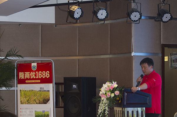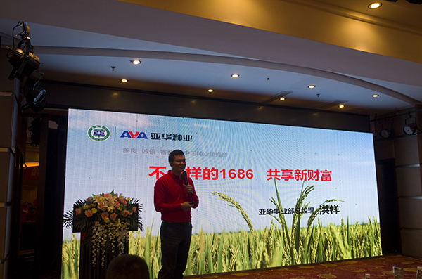 室內(nèi)會(huì)議伊始,由亞華事業(yè)部總經(jīng)理洪祥作題為《不一樣的1686,共享新財(cái)富》的報(bào)告。洪總深入分析當(dāng)前種業(yè)市場(chǎng)狀況,點(diǎn)播種業(yè)之難題、經(jīng)營(yíng)之困惑;同時(shí)告知破局之建議:聚(聚有實(shí)力的公司、聚有市場(chǎng)競(jìng)爭(zhēng)力的品種、聚核心的市場(chǎng)、聚優(yōu)良的服務(wù)和運(yùn)作)。而亞華品牌就是一個(gè)具有強(qiáng)大實(shí)力的平臺(tái),亞華種業(yè)一直秉承“亞華出品,必為精品”的品種理念,從早雜株兩優(yōu)系列,到種業(yè)日不落神話——深兩優(yōu)5814,再到四國(guó)審、超級(jí)稻——隆兩優(yōu)華占的輝煌,亞華種業(yè)以市場(chǎng)的檢驗(yàn)給大家遞交了一份份完美的答卷。超強(qiáng)恢復(fù)系華恢1686是“華占”與“谷梅4號(hào)”雜交,再用其F1與“R608”雜交而來,現(xiàn)在亞華科學(xué)院區(qū)試小組中組配了“隆兩優(yōu)1686”、“晶兩優(yōu)1686”、“瑋兩優(yōu)1686”、“悅兩優(yōu)1686”、“4001s/華恢1686”、“3158s/華恢1686”等一系列具有市場(chǎng)競(jìng)爭(zhēng)力的品種。洪總最后說到:“希望大家能夠抓住機(jī)遇、迎接挑戰(zhàn)、再造爆品、共享新財(cái)富”。