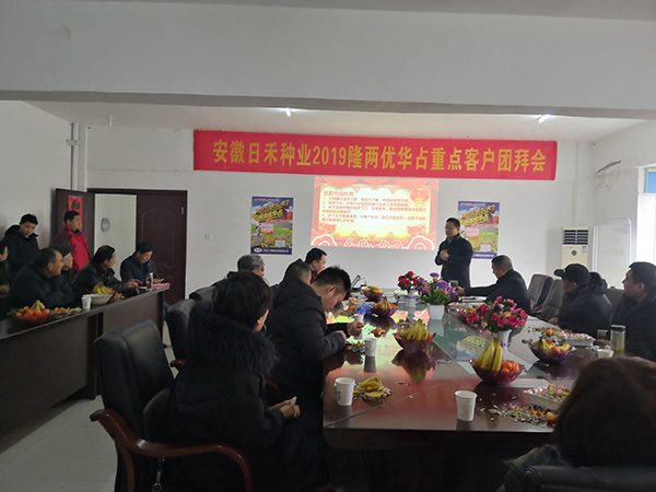 10點30分,由日禾種業(yè)總經(jīng)理魯家才主持,隆兩優(yōu)華占銷售團隊向所有在座嘉賓拜年。祝愿我們珠聯(lián)璧合、豬年大吉、諸事順利,經(jīng)過一年的奮斗隆兩優(yōu)華占的合作伙伴們可以珠光寶氣!