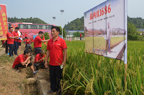 首先,亞華鳳稻——晶兩優(yōu)1686金黃的稻穗映入大家的眼球,穗大粒多、莖稈粗壯、結(jié)實(shí)率高等突出表現(xiàn),讓專家們贊不絕口;隨后,絲苗中的翹楚亞兩優(yōu)絲苗如同閃爍著金光吸引了一大批客戶,示范過的經(jīng)銷商們在路邊邊看邊討論,還有經(jīng)銷商自豪地說,“我種的比示范田的好得多”,株高115cm,整精米率更是高達(dá)68.6%,絲苗米質(zhì),耐高溫能力強(qiáng),抗逆性強(qiáng),不由得讓人感嘆,好品種理應(yīng)如此;然后,大家來到了伴隨陣陣清香如玉般耀眼的振兩優(yōu)玉占示范田,株型緊湊、株高適中、抗倒性強(qiáng)、長寬比超過4、整精米率64.5%,食味評分高達(dá)92,種植效益明顯,大家紛紛要求與振兩優(yōu)玉占合影,不愧稱之為“皇族米”;最后,大家來到有著國家“《食味稻品種品質(zhì)》標(biāo)準(zhǔn)一級”稱呼的隆晶優(yōu)4013示范田前,感受著國標(biāo)一級米品種帶來的震撼,舌尖上的中國可能也不過如此,經(jīng)歷過40天高溫的隆晶優(yōu)4013結(jié)實(shí)率絲毫未受到影響,反而逆勢而行,產(chǎn)量可能遠(yuǎn)遠(yuǎn)超出預(yù)期。經(jīng)過一輪輪震撼觀摩后,大家依依不舍地離開了示范田。