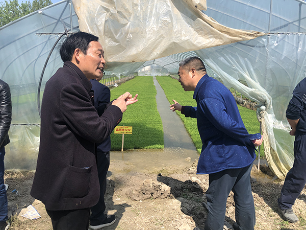 霍邱縣種植業(yè)發(fā)展局局長徐萬華領導一行參觀指導晶兩優(yōu)1212育秧