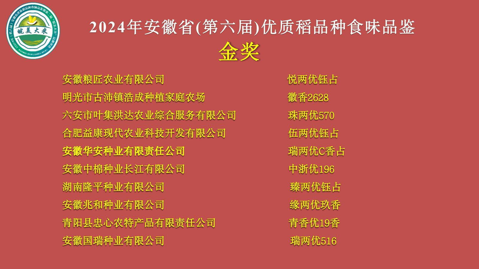 1月11日,安徽省(第六屆)優(yōu)質(zhì)稻品種食味品鑒暨第二屆“皖美大米”品牌評選結(jié)果發(fā)布會上,湖南亞華種業(yè)有限公司雜交水稻品種“悅兩優(yōu)鈺占”、“伍兩優(yōu)鈺占”在52家單位申報的65個參評品種中脫穎而出,分別榮獲優(yōu)質(zhì)稻品種食味品鑒金獎第一名和第四名的好成績。