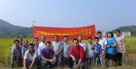 2014年9月27日,20余名鄉(xiāng)鎮(zhèn)經(jīng)銷商齊聚江西銅鼓大塅鎮(zhèn)古橋村,共同參觀由湖南亞華種子有限公司推出的又一強勢品種——隆兩優(yōu)華占。雖然烈日當(dāng)頭,但也阻擋不了大家的熱情,對于好的品種他們總是不吝惜贊美之詞。
