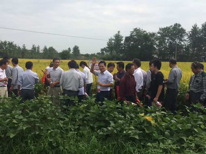 代理商吳斌向大家介紹:今年雨水多氣溫低,很多品種都不同程度的感染稻瘟病和稻曲病,結(jié)實(shí)率就更不行,也有不同程度的倒伏情況,大大影響了農(nóng)戶們的產(chǎn)量,但是你們看看隆兩優(yōu)華占現(xiàn)在的田間表現(xiàn),今年的惡劣氣候?qū)λ稽c(diǎn)影響都沒有,米質(zhì)更好,國(guó)家一級(jí)米,等收割后,我將大米送給大家免費(fèi)品嘗,好品種要和大家一起分享嘛!今天我請(qǐng)了這么多位種田能手來參觀隆兩優(yōu)華占,就是想與大家分享,一家豐收,不算豐收!大家豐收才是豐收??!大家不要看廣告,看產(chǎn)量?。?br />