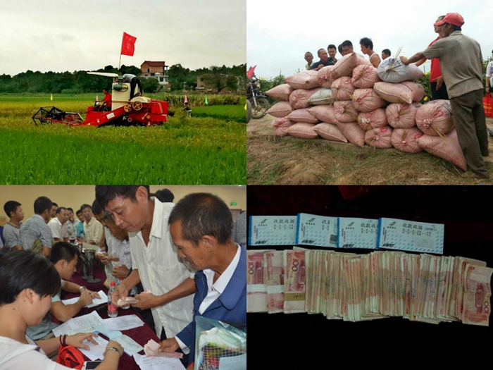 經(jīng)過二十分鐘的收割,大家最期待的現(xiàn)場稱重測產(chǎn)正式開始,只見一袋袋稻谷被搬到電子秤,工作人員迅速進(jìn)行記錄和統(tǒng)計。經(jīng)過一番緊張忙碌的工作,結(jié)果終于揭曉:弋陽灣里鄉(xiāng)現(xiàn)場實地收割稻田1.01畝,去掉水分實得干谷1804斤,創(chuàng)造弋陽高產(chǎn)新紀(jì)錄。在場農(nóng)戶紛紛豎起大拇指,稱贊隆兩優(yōu)華占名副其實,現(xiàn)場熱情空前高漲。
