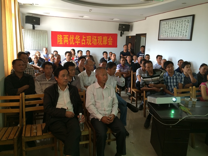 隨后代理商譚虎林組織零售商和種田大戶到室內(nèi)舉行了隆兩優(yōu)華占的座談會。會上營銷中心副總江潤良把中國種業(yè)目前的行情、公司運營情況、隆兩優(yōu)華占的特征特性以及在全國各地表現(xiàn)和火爆預(yù)訂的情況向大家做了詳細介紹。接著零售商與種田大戶代表紛紛發(fā)言,談隆兩優(yōu)華占栽培技術(shù)與種植感受,會場氣氛相當熱烈。會議最后代理商譚虎林講解隆兩優(yōu)華占相關(guān)零售商預(yù)定政策,臺上講得認真,臺下聽得仔細,至此觀摩座談會圓滿成功。