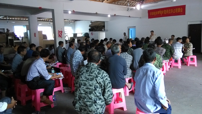 觀看結(jié)束之后,一行人舉行了室內(nèi)會議。會議中,代理商徐國經(jīng)把隆兩優(yōu)華占的分蘗力強(qiáng),抗倒性好,抗病能力強(qiáng),米質(zhì)好,著粒密度密,結(jié)實(shí)率高等優(yōu)質(zhì)特性表現(xiàn)一一講明。徐站長講的激情澎湃,農(nóng)戶們聽的也是有滋有味。作為農(nóng)技站站長,徐站長對水稻品種的鑒定有著豐富的經(jīng)驗(yàn),會議中他說:“隆兩優(yōu)華占的表現(xiàn)我是一步步實(shí)驗(yàn)的觀看出來的,是經(jīng)過科學(xué)實(shí)驗(yàn)對比出來的,要不然我不會說它的好。”種過隆兩優(yōu)華占的農(nóng)戶,竟自發(fā)要求在現(xiàn)場發(fā)言講述它的表現(xiàn),鼓勵在場的各位農(nóng)戶明年一起都種隆兩優(yōu)華占。