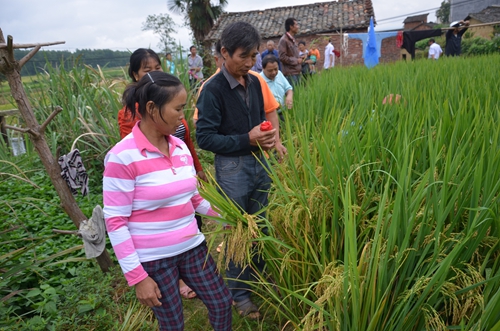 2014年9月19日,早晨8點(diǎn)40分,天下起了小雨。七琴鎮(zhèn)的種子零售商洪海平略帶擔(dān)心地看了看手機(jī)上的時(shí)間,離約好去田間觀摩中國(guó)龍稻—隆兩優(yōu)華占只剩半個(gè)小時(shí)了,卻只到了不到10人。雨卻是越下越大。突然,一陣陣摩托車的轟鳴聲由遠(yuǎn)及近,洪老板的臉上也露出了笑容,正是農(nóng)民朋友們冒著雨一個(gè)接一個(gè)地抵達(dá)集合點(diǎn),隨后拿著領(lǐng)取到的宣傳資料笑著交談著,等待著出發(fā)。