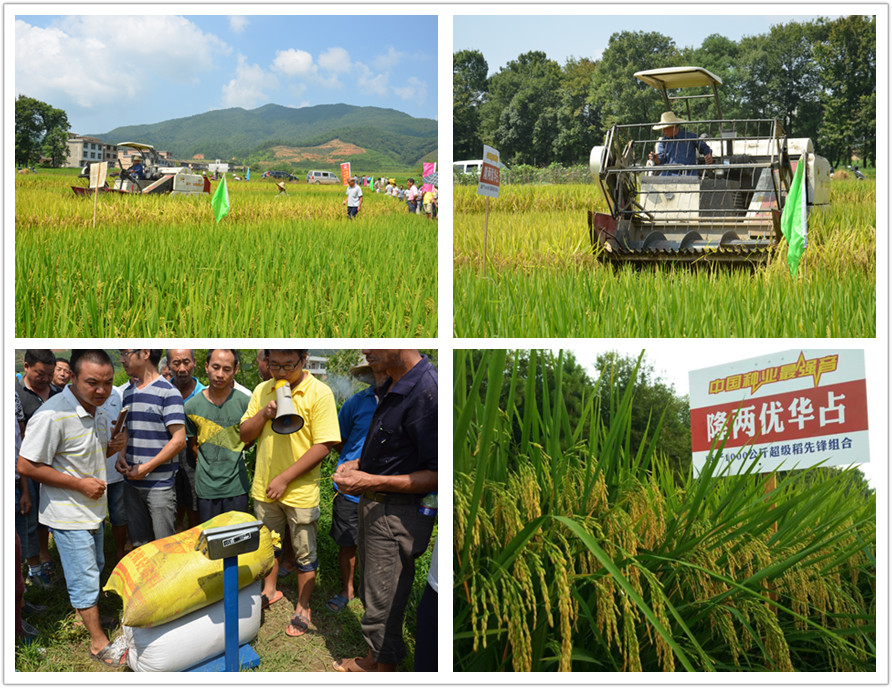 2015年8月22日,在江西上高縣田心鎮(zhèn)株村一個(gè)新的高產(chǎn)記錄誕生了:中國(guó)龍稻——隆兩優(yōu)華占在幾十人的見(jiàn)證下現(xiàn)場(chǎng)收割測(cè)產(chǎn),畝產(chǎn)濕谷達(dá)2450斤。