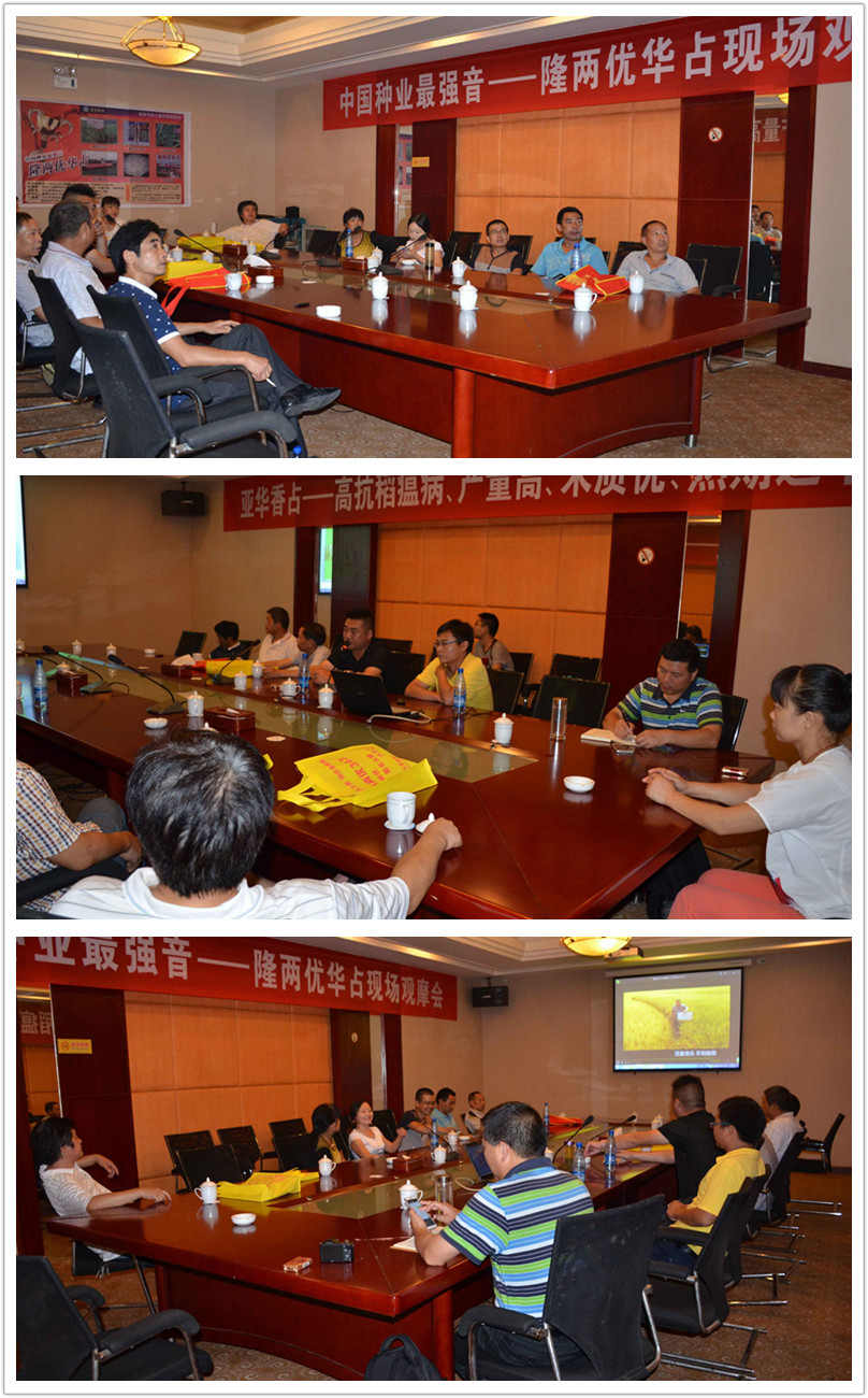 在室內(nèi)會議中,代理商張總首先就隆兩優(yōu)華占的運作做了簡要解說。接著,亞華種業(yè)湖北分公司魏華濤經(jīng)理就產(chǎn)品的特征特性進行詳細分析,亞華種業(yè)湖北分公司總經(jīng)理姜文嘉對種子質(zhì)量和獨特性給予補充說明。