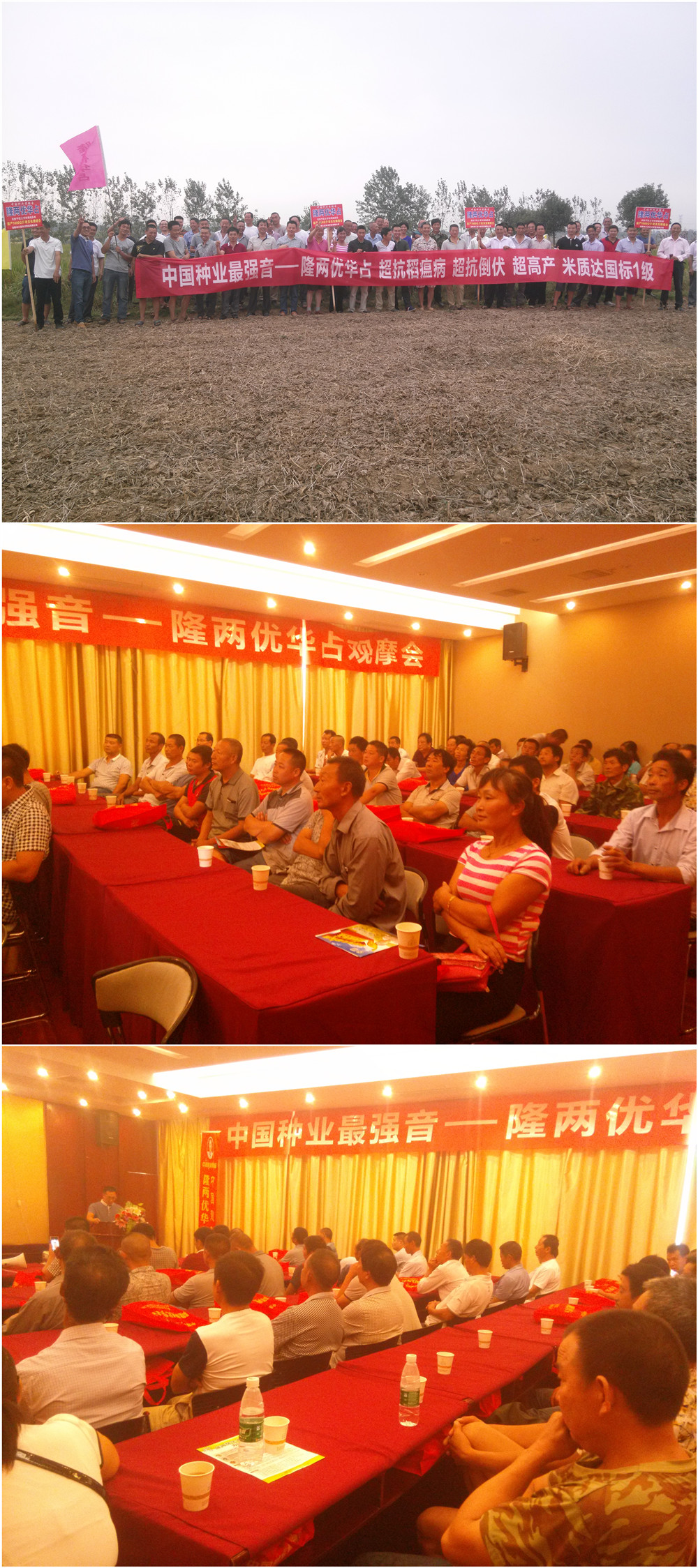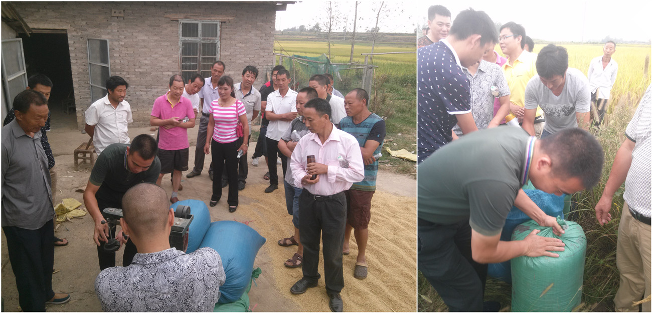 2015年9月10號,在湖北當(dāng)陽市慈化鎮(zhèn),60多名零售商在代理商客戶張江宜的帶領(lǐng)下齊聚示范田。一場“一切以事實說話”的隆兩優(yōu)華占現(xiàn)場觀摩測產(chǎn)會順利召開。