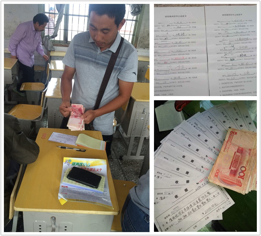 現(xiàn)場觀摩后進(jìn)行了室內(nèi)會議,會上由湖南亞華種子有限公司肖雙來經(jīng)理給大家做了關(guān)于隆兩優(yōu)華占的特征特性、國內(nèi)種植情況、種子供應(yīng)情況、預(yù)定銷售模式及保證金市場管理方法等的詳細(xì)講解。隨后,由姚元龍給大家做了相關(guān)銷售與政策的講解,經(jīng)銷商們對公司的銷售模式和市場管理方式表示完全贊同,大家都主動(dòng)繳納了市場維護(hù)保證金,之后提交了隆兩優(yōu)華占的預(yù)定數(shù)量——現(xiàn)場預(yù)定共3200公斤,預(yù)計(jì)總預(yù)定量將達(dá)到6000公斤。