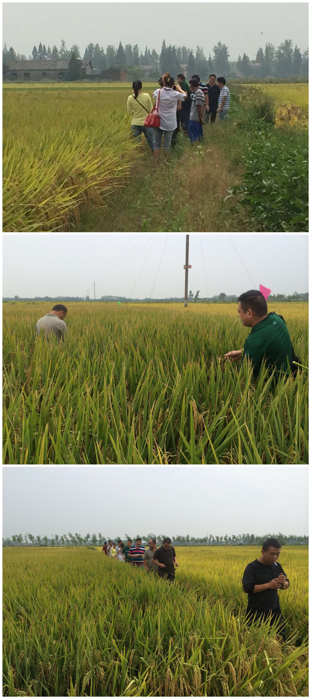 該示范田是由徐夢蘭(13873743315)種植的,栽培方式為直播,畝用量在兩斤半左右,他向觀摩的代表興奮地說到:隆兩優(yōu)華占這個(gè)品種是第二年種植了,想不到今年的表現(xiàn)比去年還要好,穗子長、發(fā)蔸強(qiáng)、有效穗多,他估計(jì)平均畝產(chǎn)量在1600斤以上,高產(chǎn)田塊達(dá)到了1900斤/畝,比當(dāng)?shù)胤N植較多的同類品種黃華占畝產(chǎn)要高出300-400斤以上,而且隆兩優(yōu)這個(gè)品種抗倒性好,種植這個(gè)品種兩年了都沒發(fā)生過倒伏現(xiàn)象,也沒有稻瘟病。參會(huì)代表聽完種植農(nóng)戶的介紹后,紛紛表示認(rèn)同,明年將大力推廣隆兩優(yōu)華占!