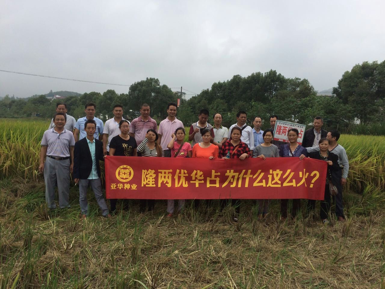 2015年9月25日,在遂川縣曾總的帶領下,來自各個鄉(xiāng)鎮(zhèn)的精英零售商們一起去示范田塊觀摩隆兩優(yōu)華占。據了解,從今年已經收割了的隆兩優(yōu)華占來看,農戶收割的產量普遍比其他品種要高出200斤左右,并且抗病抗倒能力突出,已經成為老百姓心里的明星品種。今天觀摩的這塊田是800公斤攻關田,映入眼簾的是滿滿的金黃色的穗子,看第一眼就滿心欣喜,看第二眼忍不住去零距離接觸,看第三眼就會走入田塊中央,全身心的與隆兩優(yōu)華占近距離接觸。據攻關田塊負責人黃站長說:“旁邊已經收割的田塊之前種的也是隆兩優(yōu)華占,但是是農戶自己種的,沒有我們這個的好,最后的畝產量有1450斤,我們的攻關田達到畝產1600斤基本沒問題!”聽到這話,眾零售商更是樂得合不攏嘴,紛紛表示要大力推廣隆兩優(yōu)華占。