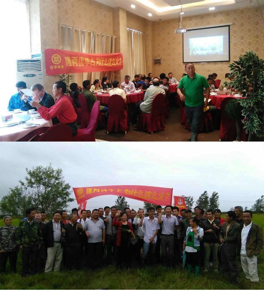 田間觀摩結(jié)束后進(jìn)行了室內(nèi)會(huì)議,會(huì)議先由湖南亞華種子有限公司區(qū)域經(jīng)理陳龍介紹了隆兩優(yōu)華占的特征特性和全省各地表現(xiàn),并對(duì)隆兩優(yōu)華占“不預(yù)定,不供應(yīng)”的銷售政策進(jìn)行了講解。隨后,鄉(xiāng)鎮(zhèn)經(jīng)銷商就隆兩優(yōu)華占的表現(xiàn)情況進(jìn)行了分享,三角鄉(xiāng)經(jīng)銷商袁汝俊這樣講道:“隆兩優(yōu)華占不僅抗倒性強(qiáng)、分蘗力強(qiáng)、抗病性好,米質(zhì)也是一等一的優(yōu)秀,我非常認(rèn)可這個(gè)品種!”