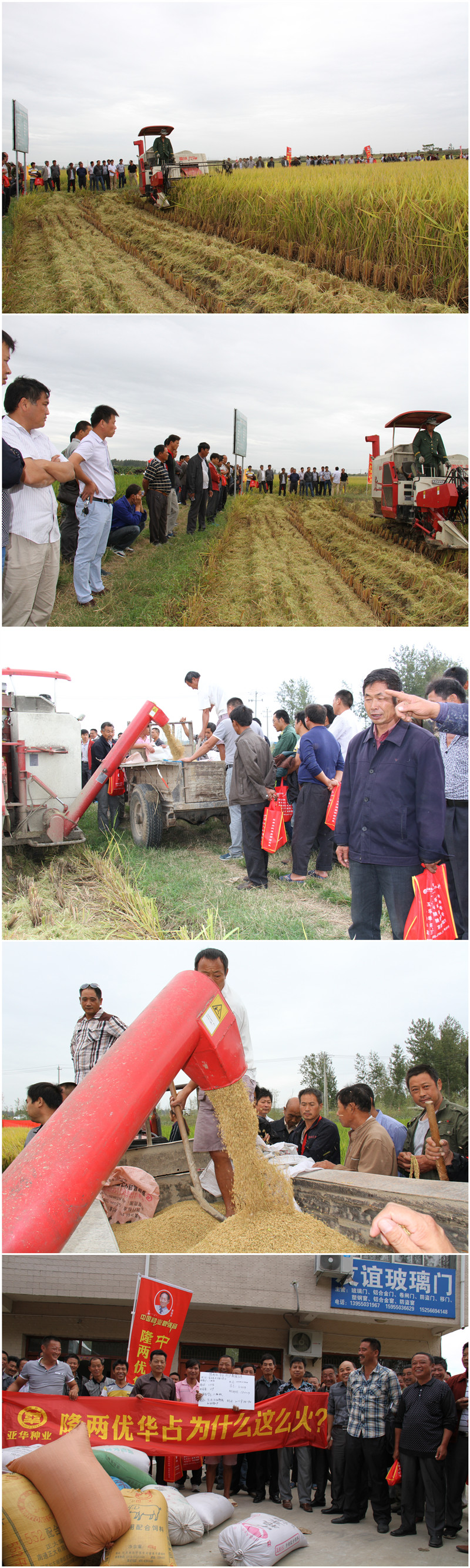 2015年9月29日,定遠(yuǎn)縣各個(gè)鄉(xiāng)鎮(zhèn)的220多位零售商和種植大戶,齊聚定遠(yuǎn)縣池河鎮(zhèn)七里河村,一起欣賞中國(guó)種業(yè)最強(qiáng)音--隆兩優(yōu)華占的豐收盛景。