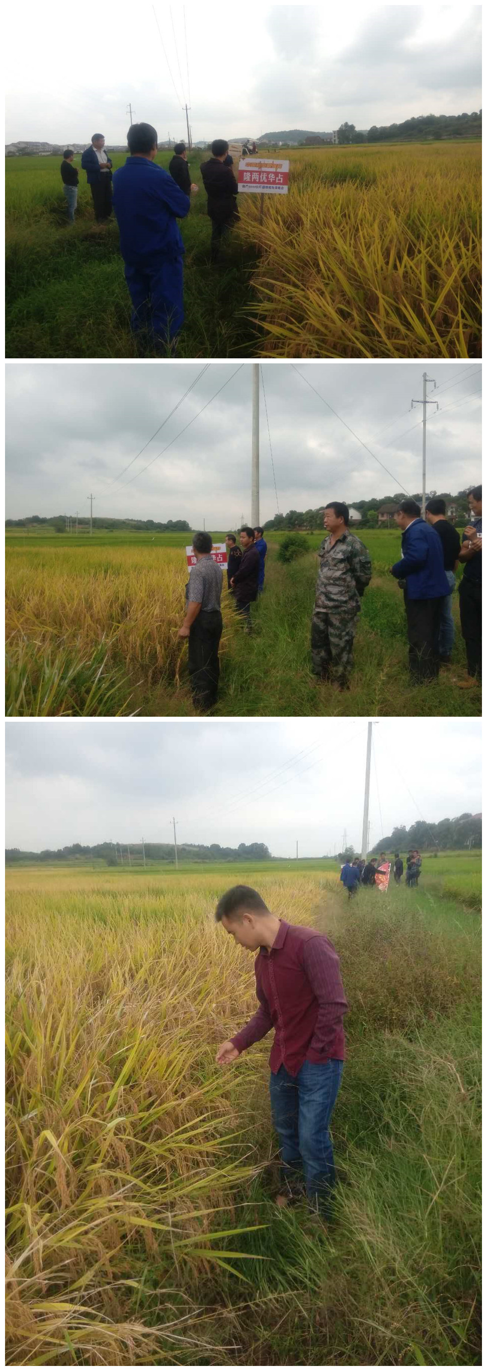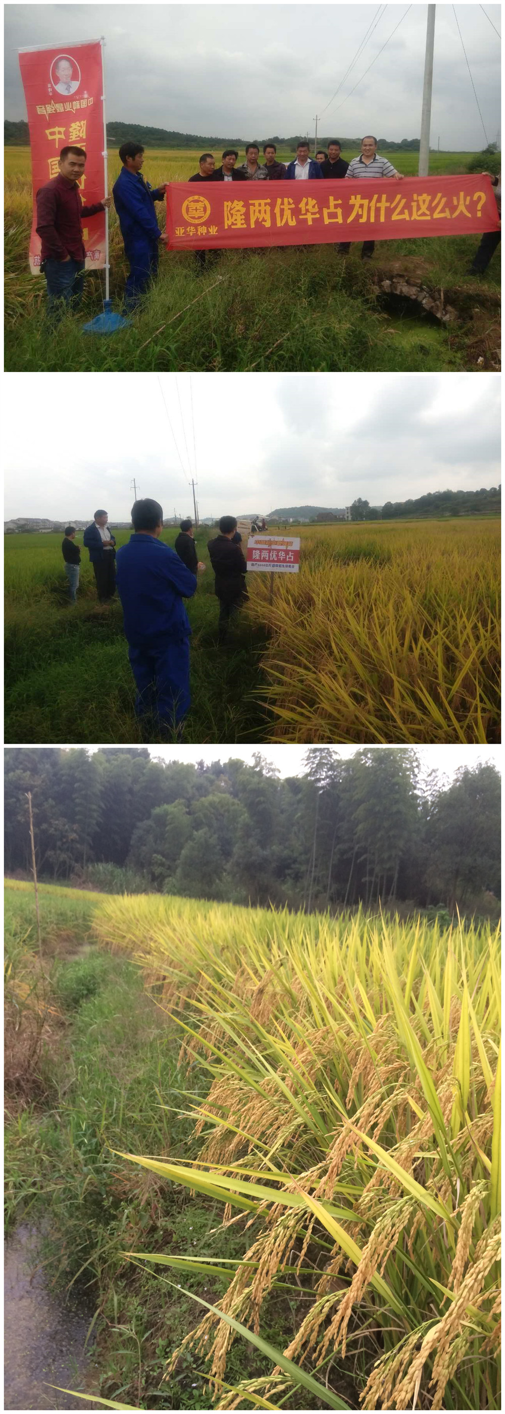 2015年10月9日,湖南株洲攸縣代理商援偉農資公司丁總組織周邊鄉(xiāng)鎮(zhèn)的經銷商和種田大戶,現場見證攸縣石羊塘鎮(zhèn)隆兩優(yōu)華占種田大戶種植水平的產量表現。該農戶今年種植隆兩優(yōu)華占40畝,5月初播種,現已經超過正常收割期,但是現場大家看到田間表現落色好、不早衰、莖稈青黃、無病害、飽滿谷子已經蠟熟且不易掉粒,整丘無倒伏,確實讓人滿意!大家紛紛預計產量有1700斤左右干谷。