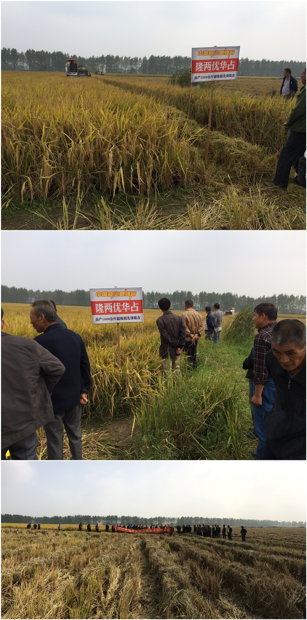 漢川代理商許合斌說:“隆兩優(yōu)華占的產(chǎn)量,要是只有2.2斤/平方,我絕對(duì)不會(huì)叫大家來看!收割機(jī)來了,我們收了看!”