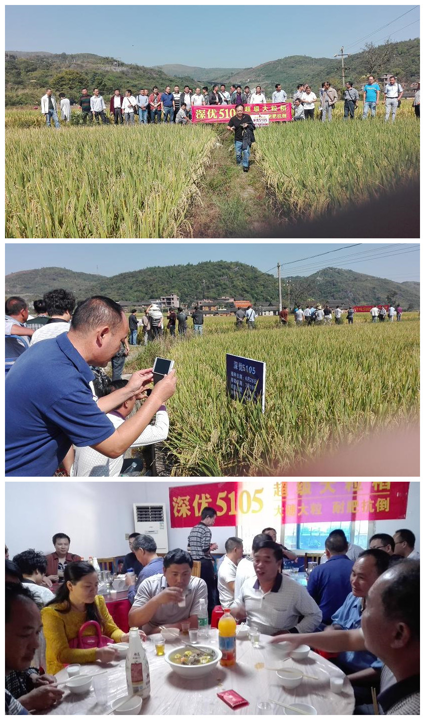 席開五桌,吃飯前,糧油站領(lǐng)導(dǎo)石春亮向大家表示深優(yōu)5105在宜章可做為晚稻和煙后稻重點(diǎn)推廣,亞華種業(yè)陳德文給大家介紹了亞華種業(yè)的發(fā)展形式及深優(yōu)5105的特征特性,與會(huì)人員高度認(rèn)同深優(yōu)5105在宜章做為重點(diǎn)推廣的意見。飯后,大家自發(fā)的到石總辦公室索要深優(yōu)5105的宣傳資料,要把這個(gè)好品種盡快的向農(nóng)戶做宣傳介紹。