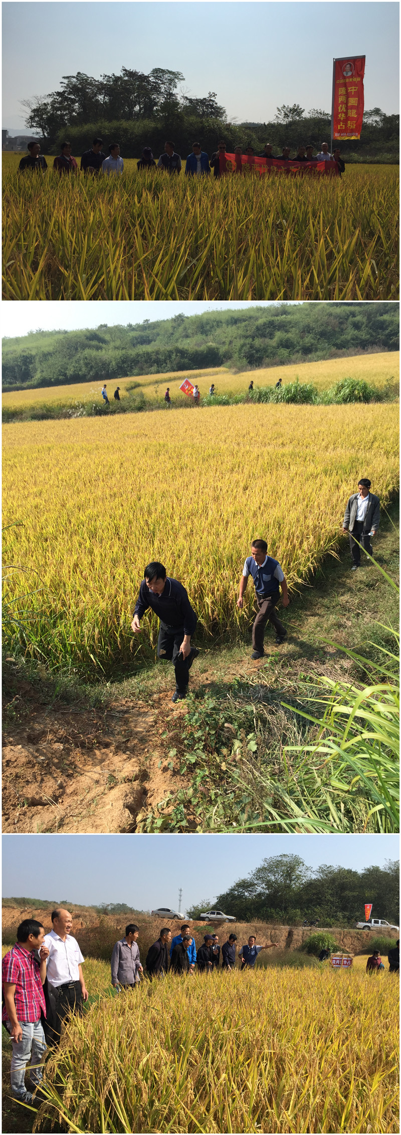 2015年10月18日,清風(fēng)徐徐,紅旗飄飄,江西彭澤縣代理商劉澤小組織了本縣各鄉(xiāng)鎮(zhèn)經(jīng)銷(xiāo)商和種田大戶(hù)齊聚黃花鎮(zhèn),成功開(kāi)展了隆兩優(yōu)華占在彭澤縣的觀(guān)摩會(huì)首秀。