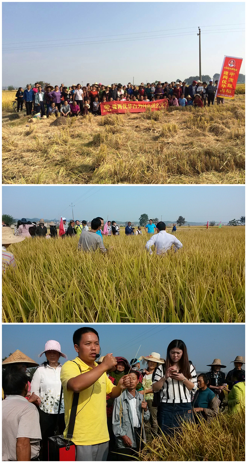 上午9時許,就有許多的種植戶都迫不及待地聚集在隆兩優(yōu)華占的田間,都想一睹高產(chǎn)稻——隆兩優(yōu)華占的田間風(fēng)采。走到田間,大家都被一層層稻浪構(gòu)成的美景所吸引住,他們紛紛折下稻穗數(shù)粒數(shù)、看結(jié)實率,看后都露出了滿意的笑容,很多種植戶對隆兩優(yōu)華占很感興趣,紛紛打聽這品種的具體情況。種植戶吳日喜坦言道:“隆兩優(yōu)華占在當(dāng)?shù)貙Ρ绕渌贩N,說它的產(chǎn)量排名第一,那絕對是實至名歸”。新灘街鎮(zhèn)大戶吳事愛說:“今年種植了52畝隆兩優(yōu)華占,實收890袋干谷,平均每袋85斤,折合畝產(chǎn)1454斤干谷。同時它的出米率比其他品種要高5斤左右、米質(zhì)也更加優(yōu)質(zhì)”!