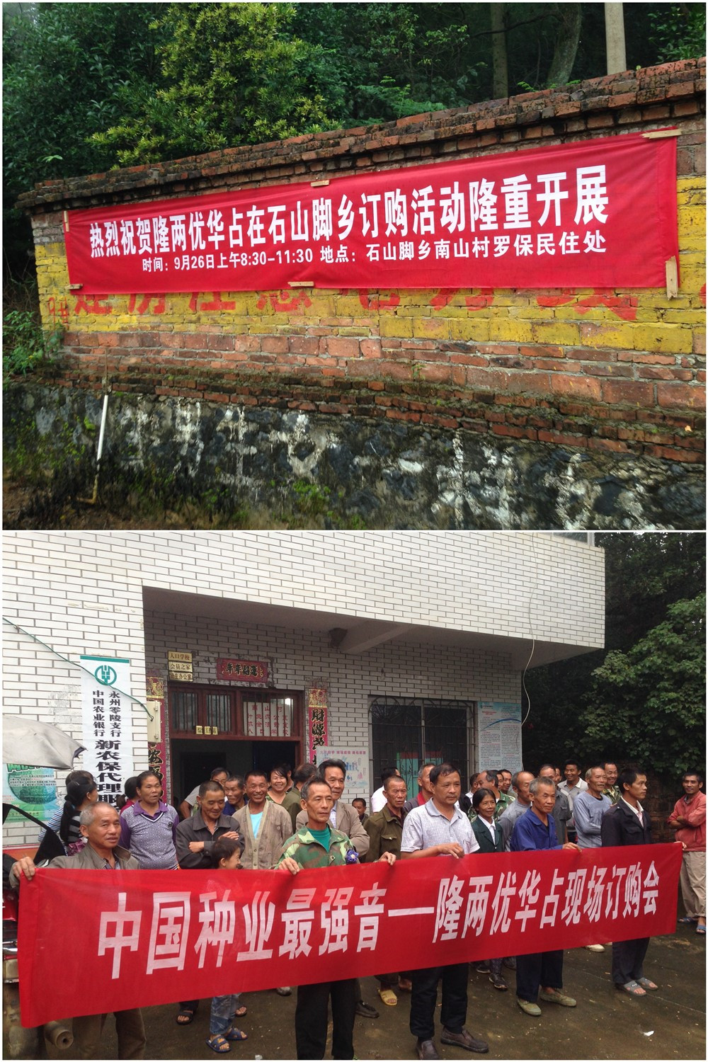 2015年9月26日,在零陵區(qū)石山腳鄉(xiāng)南山村召開了隆兩優(yōu)華占現(xiàn)場預(yù)訂大會,共80余位零售商與大戶到場。會議現(xiàn)場大家認(rèn)真聽取了亞華種業(yè)銷售人員對隆兩優(yōu)華占四大優(yōu)勢的介紹——超高產(chǎn),超優(yōu)質(zhì),超抗病,超抗倒,大家一致認(rèn)可只有同時具備這四大優(yōu)勢的品種才是農(nóng)戶的種植首選。隨后,零陵聯(lián)合利農(nóng)唐總介紹了在零陵區(qū)隆兩優(yōu)華占的表現(xiàn)和典型,以及“不預(yù)定,不供種”的銷售政策。預(yù)訂會農(nóng)戶積極踴躍地訂購隆兩優(yōu)華占,大家都說:明年我們就種隆兩優(yōu)華占!