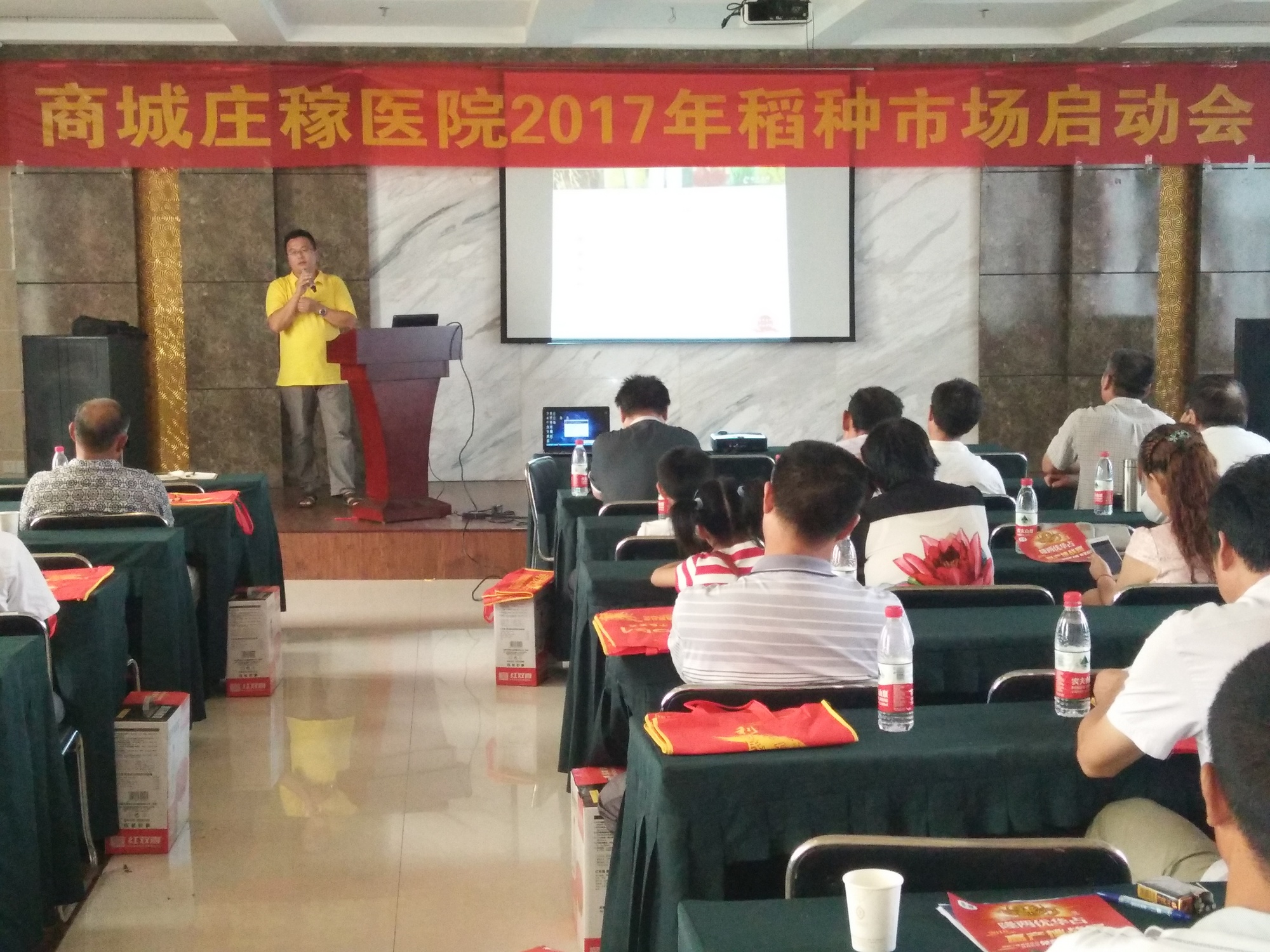 2016年8月21日,河南信陽商城縣隆兩優(yōu)華占的代理商葉總召開了40多位鄉(xiāng)鎮(zhèn)零售商參加的2016—2017年度稻種市場(chǎng)銷售啟動(dòng)會(huì)議。