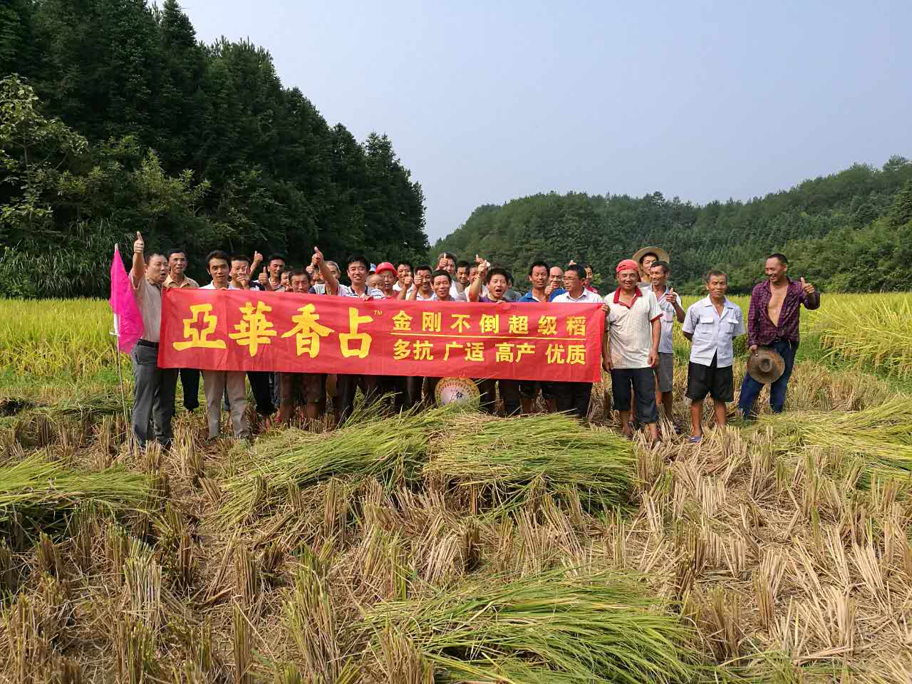 2016年8月25日,在南城縣龍湖鄉(xiāng),亞華香占做的一季早稻迎來了豐收。種植戶收割了2.4畝,割出63袋谷子,他自己也沒有想到產(chǎn)量能有這么好,高興地將這個喜訊告知代理商與親朋好友,第二天在慕名前來的40余人共同見證下現(xiàn)場收割測產(chǎn),實割0.38畝,收谷828斤,扣除20%水分,合畝產(chǎn)干谷1743斤,刷新了去年一季早稻的高產(chǎn)記錄。