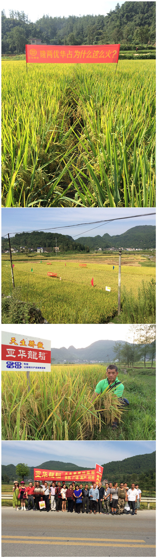 2016年9月3日,花垣縣數(shù)十位主要經(jīng)銷商齊聚在龍?zhí)逗渔?zhèn),只為再次目睹亞華龍稻的完美表現(xiàn)。在田間,彩旗飄飄,陣勢比去年更勝一籌。