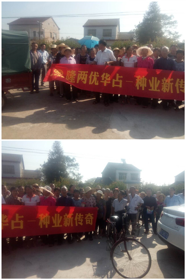 2016年9月18日上午,來自八寶鎮(zhèn)各村莊的170余名農(nóng)戶來到位于白水淌村尹超的田間,一起見證隆兩優(yōu)華占的測產(chǎn)情況。