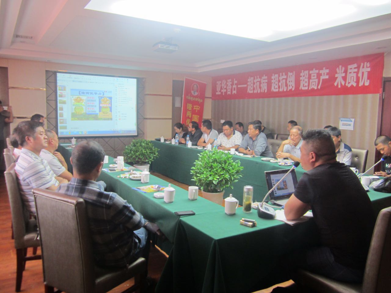 會(huì)議在枝江代理商張亞洲的主持下拉開帷幕,他介紹了隆兩優(yōu)華占在今年惡劣氣候下枝江市場(chǎng)的優(yōu)秀表現(xiàn),總結(jié)了枝江以及周邊市場(chǎng)的種業(yè)形勢(shì),提醒大家慎重選擇品種。亞華種業(yè)的黃經(jīng)理向大家介紹了大亞華的新愿景,并回顧了亞華關(guān)于棉種、株兩優(yōu)、陵兩優(yōu)、深兩優(yōu)5814等輝煌的歷史。隨后向大家介紹了隆兩優(yōu)華占在全國(guó)各地優(yōu)秀的表現(xiàn),尤其是在大災(zāi)之年表現(xiàn)出結(jié)實(shí)率高、高產(chǎn)穩(wěn)產(chǎn)的優(yōu)勢(shì)。接著,向大家宣讀了上年度某些市場(chǎng)隆兩優(yōu)華占竄貨處罰決定書,重申了公司做好維護(hù)市場(chǎng)秩序的決心。