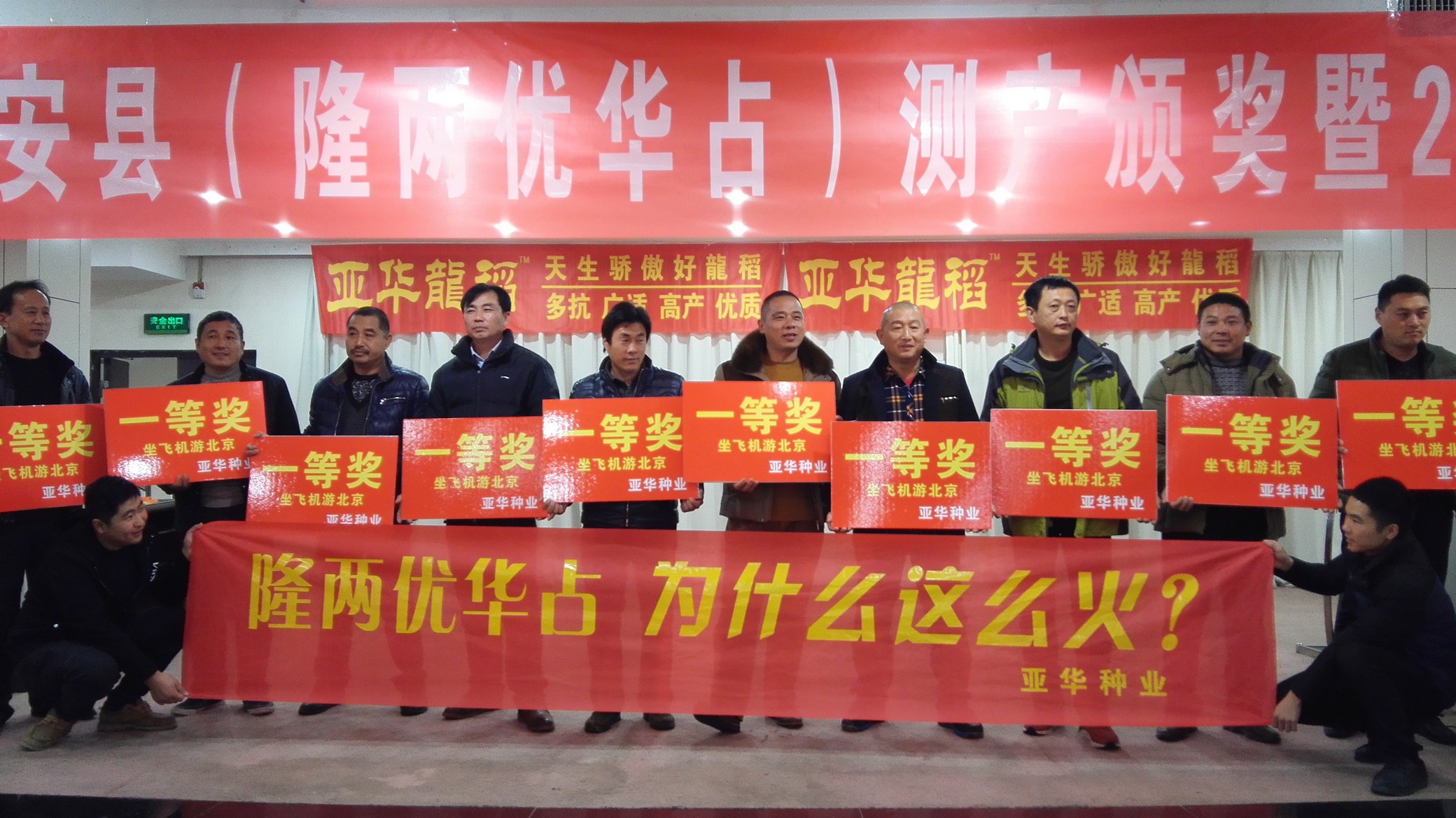會(huì)議最后,對(duì)來(lái)安縣各地隆兩優(yōu)華占的測(cè)產(chǎn)高產(chǎn)戶進(jìn)行了表彰并合影留念,獲獎(jiǎng)農(nóng)戶手捧獎(jiǎng)品,喜笑顏開,可謂田間會(huì)上雙豐收。相信他們對(duì)來(lái)年的種子,已經(jīng)做好了選擇。
