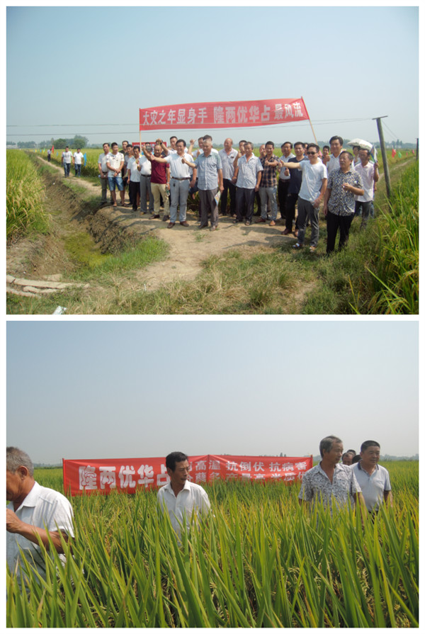 2016年9月11號早上8點,室內(nèi)會議現(xiàn)場已經(jīng)布置好,經(jīng)銷商陸陸續(xù)續(xù)抵達(dá),9點30分,喻總帶領(lǐng)一行五十多人驅(qū)車前往位于吳臺村的觀摩現(xiàn)場,經(jīng)銷商圍繞隆兩優(yōu)華占觀摩田繞了一圈,仔細(xì)察看了隆兩優(yōu)華占的結(jié)實率情況,紛紛表示贊揚(yáng)。