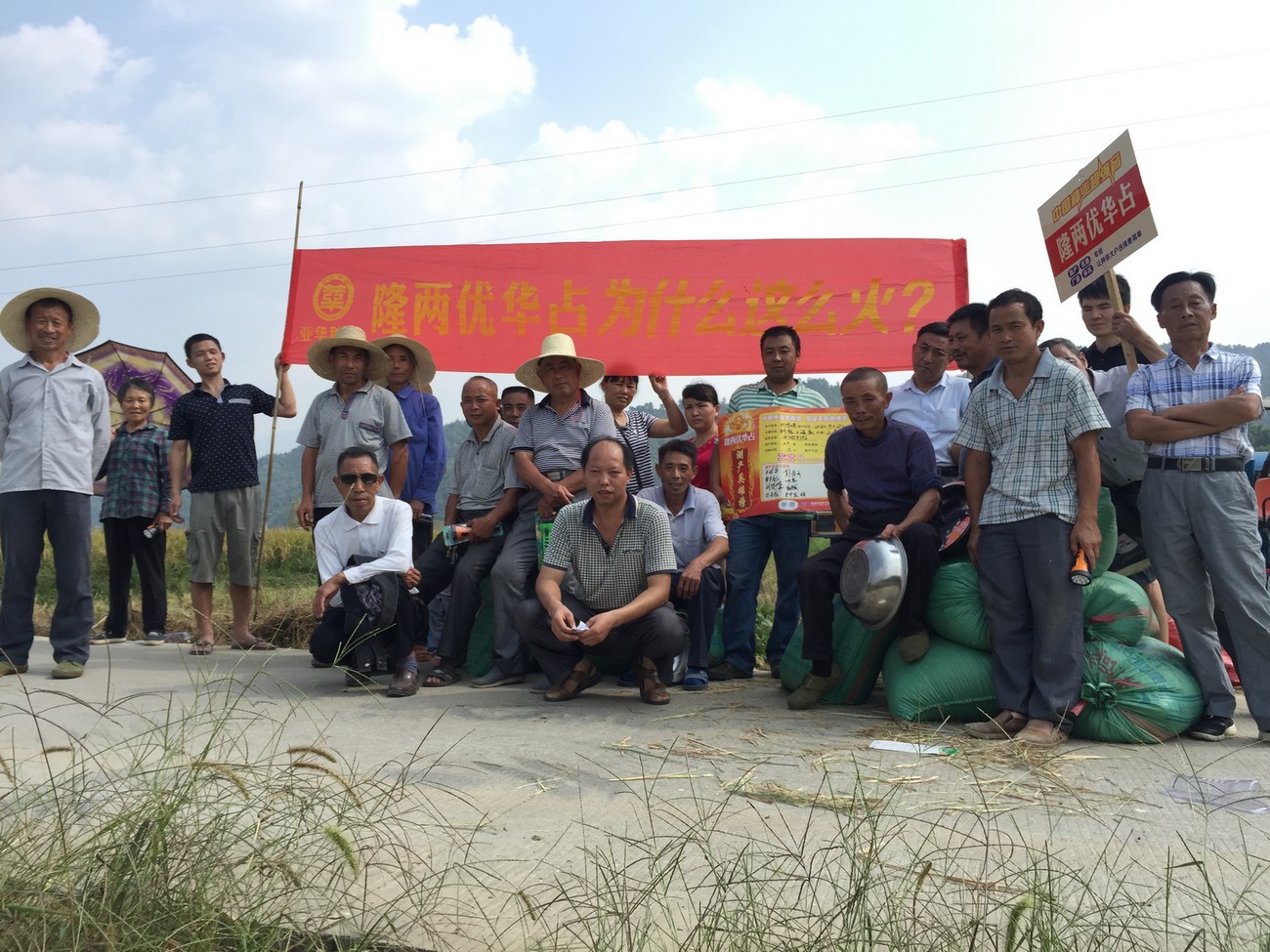 2016年9月27日,清風(fēng)徐徐,紅旗飄飄,銅鼓縣代理商帥學(xué)良組織了本縣各鄉(xiāng)鎮(zhèn)經(jīng)銷商和種田大戶三十余人齊聚永寧鎮(zhèn),成功開展了隆兩優(yōu)華占在銅鼓縣的觀摩測產(chǎn)會(huì)首秀。