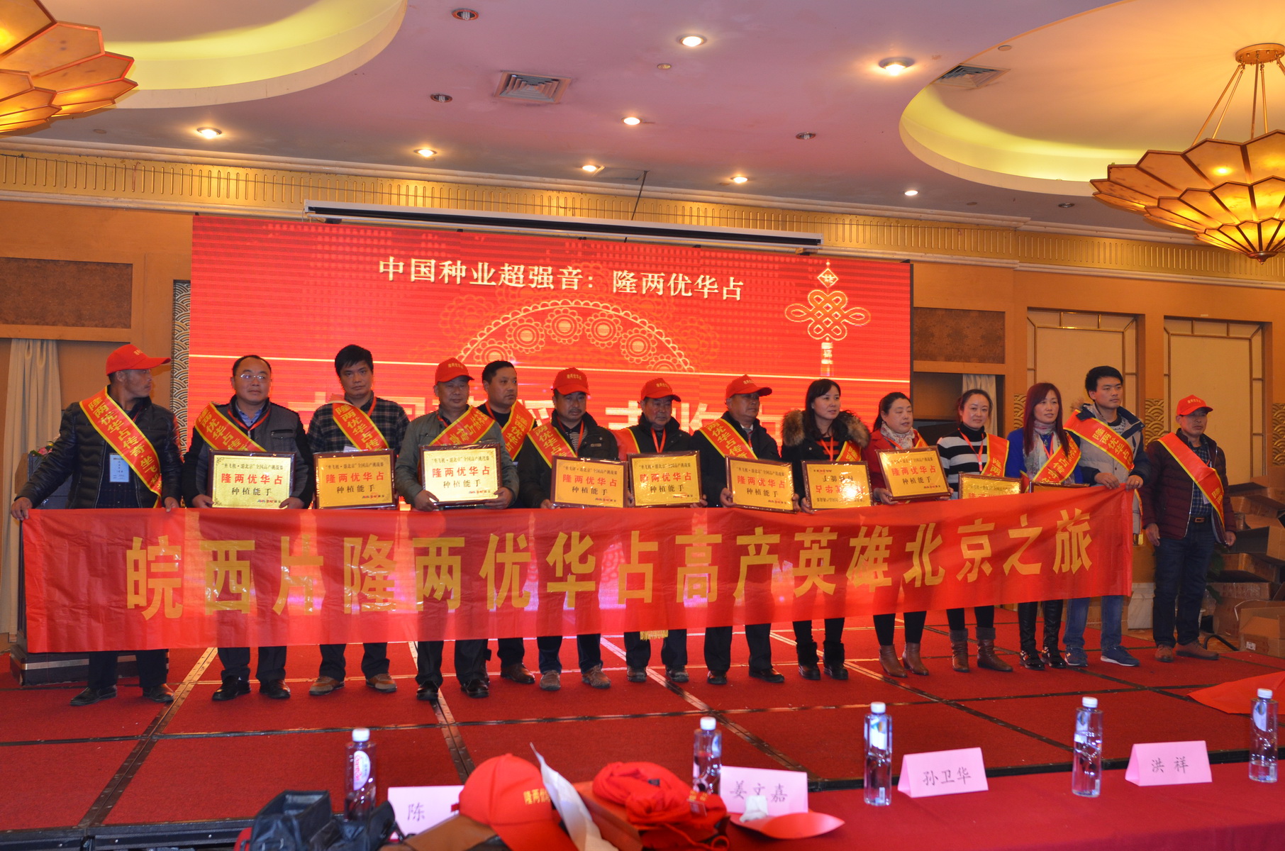 21日上午,工作人員帶領(lǐng)全國隆兩優(yōu)華占全國高產(chǎn)挑戰(zhàn)賽種植能手參觀完國家博物館后,“隆兩優(yōu)華占全國高產(chǎn)挑戰(zhàn)賽表彰大會(huì)”在北京斯博瑞酒店隆重舉行。全國高產(chǎn)獲獎(jiǎng)農(nóng)戶有序進(jìn)入會(huì)場,會(huì)議開始,全體種植能手起立唱響《國歌》以感恩祖國、感恩現(xiàn)代幸福生活,來自全國的隆兩優(yōu)華占高產(chǎn)農(nóng)戶個(gè)個(gè)精神抖擻,國歌聲震撼會(huì)場。