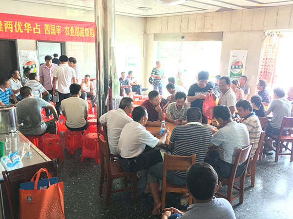 2017年8月8日,在株洲攸縣大同橋隆重召開(kāi)隆兩優(yōu)華占再生稻頭季觀摩會(huì)。參與此次大會(huì)的種植大戶共有80余人,在經(jīng)銷商丁偉的組織下,大家一起見(jiàn)證了作為湖南省農(nóng)業(yè)廳再生稻重點(diǎn)推出品種——隆兩優(yōu)華占頭季的大田之美。