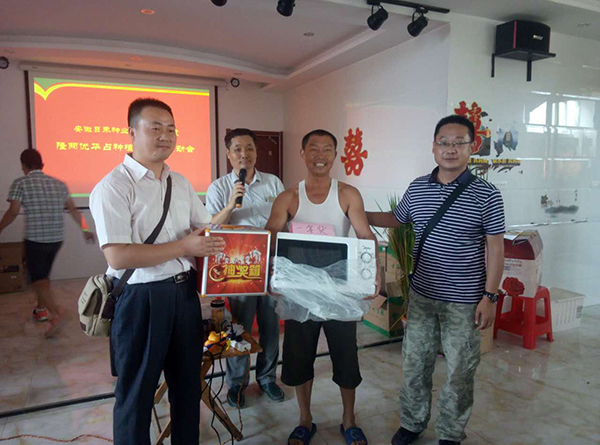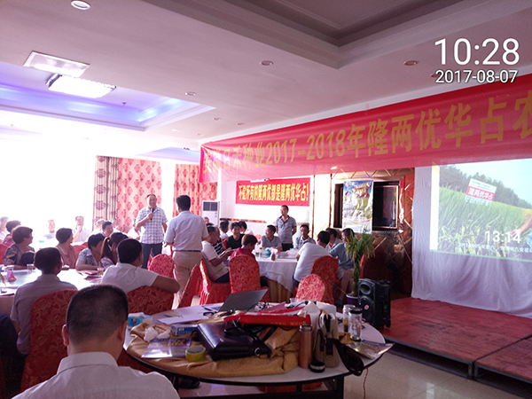 2017年8月7、8、9日分別在霍邱戶胡鎮(zhèn)、河口鎮(zhèn)和長集鎮(zhèn)召開隆兩優(yōu)華占訂購“千人大會”,三場訂購分會均由安徽日禾種業(yè)總經(jīng)理許進及亞華種業(yè)安徽分公司皖西大區(qū)經(jīng)理黃明燈主持。