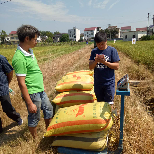 現(xiàn)場收割機下田收割,大家則有的觀察結(jié)實率、有的把莖干撥開查看分孽芽、有的向種植大戶請教再生稻技術(shù)。很快收割完成,在現(xiàn)場工作人員認真過秤、測水分、測面積,現(xiàn)場計算結(jié)果為902公斤,大家對這個產(chǎn)量都很滿意。同時李波作了相關(guān)介紹,該再生稻3月25日機播機插,有效穗多、結(jié)實率高、稻谷成熟度高、沒青谷、谷子飽滿打稱產(chǎn)量肯定高。