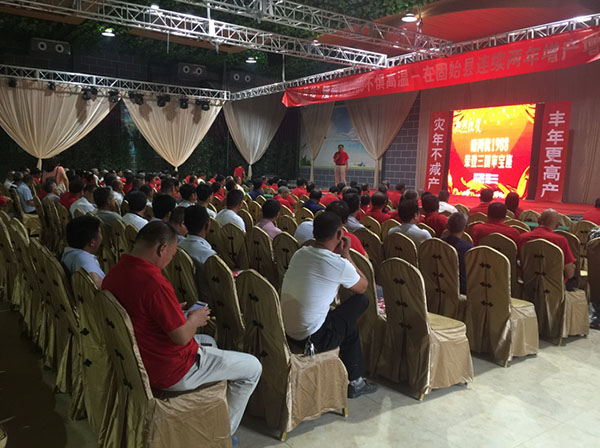 最后,殷總為大家介紹了“財(cái)神稻”隆兩優(yōu)1988在固始兩年來的銷售情況,以及兩年來“財(cái)神稻”隆兩優(yōu)1988的田間表現(xiàn),在高溫情況下,結(jié)實(shí)率連續(xù)兩年依然在90%以上,真正做到了災(zāi)年不減產(chǎn),豐年更高產(chǎn)。殷總表示跟緊公司步伐,幾年內(nèi)將“財(cái)神稻”隆兩優(yōu)1988做成固始縣的大品種,乃至全國(guó)的大品種!