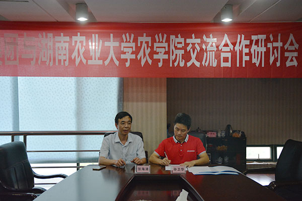 會后,孫衛(wèi)華先生與張海清院長共同簽訂了《湖南農(nóng)業(yè)大學(xué)與用人單位建立畢業(yè)生就業(yè)基地合作意向書》,雙方希望在未來企業(yè)員工繼續(xù)教育、畢業(yè)生就業(yè)與實習(xí)等方面加強(qiáng)校企合作,實現(xiàn)共同發(fā)展。