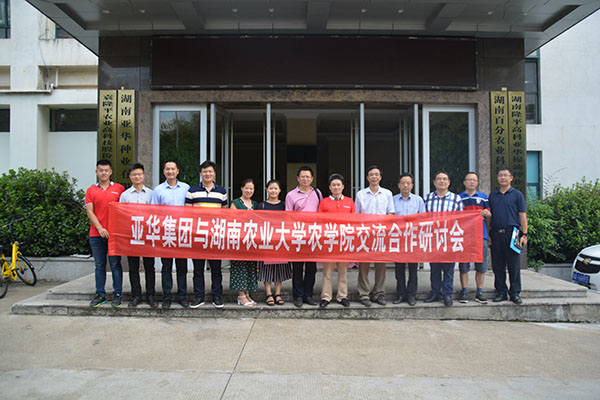 2017年8月28日下午,湖南農(nóng)業(yè)大學(xué)農(nóng)學(xué)院張海清院長一行人蒞臨我司,洽談關(guān)于湖南亞華種業(yè)有限公司與湖南農(nóng)業(yè)大學(xué)校企合作的相關(guān)事宜。