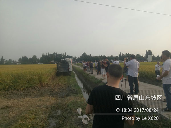 由于近期天氣不穩(wěn)定,暴雨不斷,為了給四川各地的代理商展現(xiàn)財(cái)神稻真實(shí)的高產(chǎn)穩(wěn)產(chǎn)能力,經(jīng)過我們和壹稼人燕總協(xié)商,我們分別于8月23日、24日,兩次對(duì)眉山財(cái)神稻200畝連片示范田進(jìn)行了兩次測(cè)產(chǎn)。其中8月24日的測(cè)產(chǎn)現(xiàn)場(chǎng)有近50名來賓現(xiàn)場(chǎng)參與,現(xiàn)場(chǎng)產(chǎn)量分別為1620斤干谷/畝和1698斤干谷/畝,現(xiàn)場(chǎng)真實(shí)地測(cè)產(chǎn)數(shù)據(jù)給各地代理商、零售商、種植大戶展示了財(cái)神稻的高產(chǎn)穩(wěn)產(chǎn)能力。