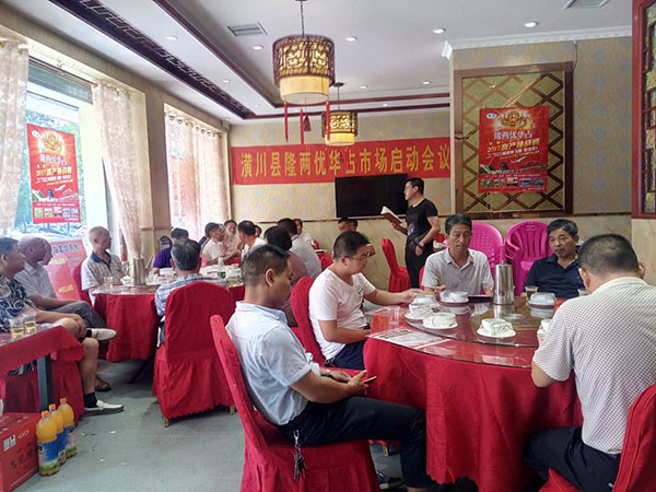 隨后大家來到室內(nèi)會場,首先由代理商劉總對大家的到來表示熱烈歡迎。隨后亞華種業(yè)區(qū)域經(jīng)理許樹濱就公司基本情況、隆兩優(yōu)華占的八大優(yōu)勢、品種的運(yùn)作模式、品牌的重要性、市場維護(hù)及后續(xù)品種等方面向大家做了詳細(xì)介紹,最后代理商劉總就今年的銷售政策做了詳細(xì)介紹,堅(jiān)決執(zhí)行預(yù)定政策。