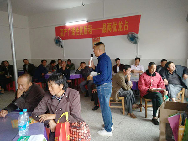 2017年9月2日星期六,在湖北棗陽(yáng)晶兩優(yōu)龍占代理商陳福剛及新集鎮(zhèn)王經(jīng)銷(xiāo)商王老板的組織下,晶兩優(yōu)龍占訂購(gòu)會(huì)在新集鎮(zhèn)隆重召開(kāi),參會(huì)人員有來(lái)自新集鎮(zhèn)的各村農(nóng)戶(hù)共50人。
