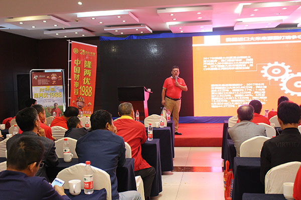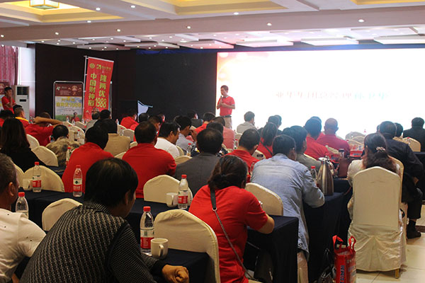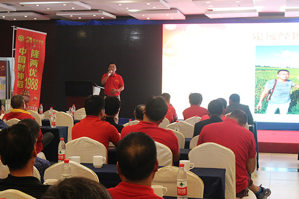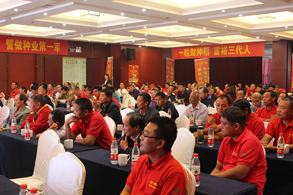 隨后,會議由百分農業(yè)總經理江總分析在當今的形勢下如何順勢、借勢、造勢把品種做大做強以及介紹公司的基本情況;皖西朱經理對隆兩優(yōu)1988的品種特性和如何高產進行介紹;蘇皖大區(qū)經理李總就市場管理方面和后續(xù)公司的品種進行講解和介紹。接下來是來自定遠代理商楊總、霍邱汪總、壽縣韓總對財神稻在當?shù)氐谋憩F(xiàn)和推廣經驗的分享。會議的最后由亞華集團總經理孫總做最后的重要講話。