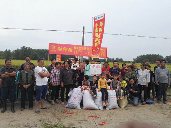2017年9月4日上午,在陣陣財神雨中隆重召開了百分農業(yè)蘇皖大區(qū)2017-2018年度財神稻觀摩測產暨品種推薦大會。會議由皖南區(qū)域經理楊柳主持,亞華集團總經理孫總、百分農業(yè)總經理江總、蘇皖大區(qū)經理李總、蘇皖大區(qū)各區(qū)域經理、來自廣東大區(qū)的胡加波經理和潘陽經理以及安徽、江蘇兩省各地的“財神爺”代理商和零售商近200人參加。