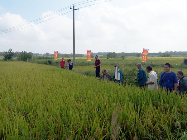 2017年9月7日,在隆王稻代理商郭海濤的組織下,30多位當地種植戶一起前往安徽定遠縣程橋宮集村隆兩優(yōu)1212示范田共同見證隆王稻的優(yōu)秀表現。